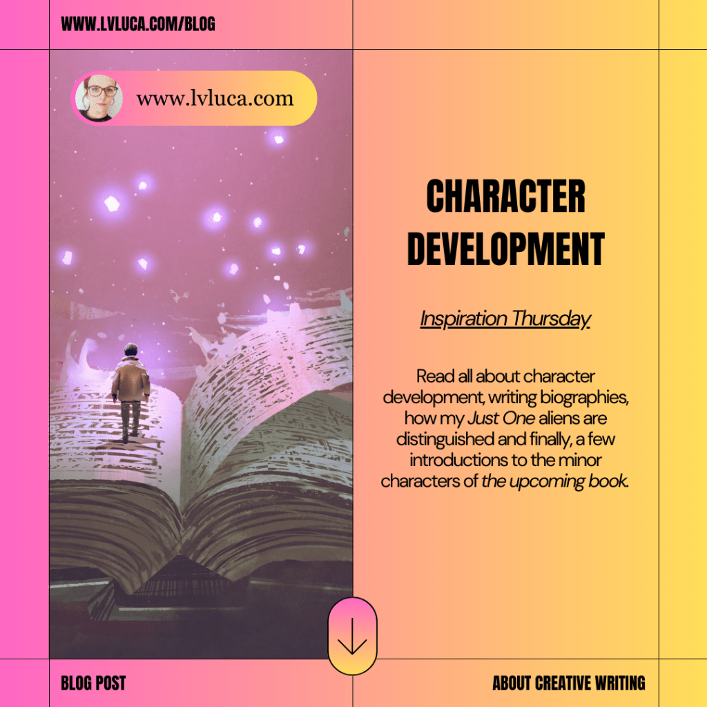 Writing minor characters can sometimes be a problem because they get no attention. They remain uninteresting (I learn nothing about them without their POV), or I give them the time, and suddenly, these are not as minor as they were meant to be; as I learn their history, their dreams or broken dreams, people they love or used to love. There are actually four characters like that in Just One.
